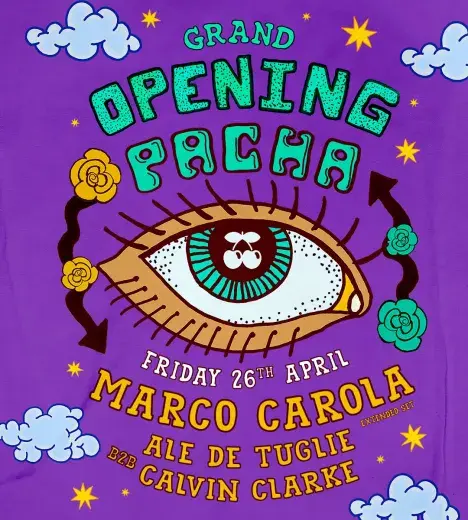 At Pacha Ibiza on Friday, April 26th, 2024, Marco Carola, the global Italian ambassador of techno and the mastermind behind 'Music On,' will headline the opening weekend. The event promises an extended set by Carola, delivering the best of house and electronic music. Kicking off the night at midnight will be Ale de Tuglie b2b Calvin Clarke, setting the stage for a memorable evening. Attendees can expect an uninterrupted dance experience, as Carola takes them on a musical journey that will keep them glued to the dance floor all weekend. Secure your tickets now for the Grand Opening Party 2024 at Pacha Ibiza on Friday, April 26th.